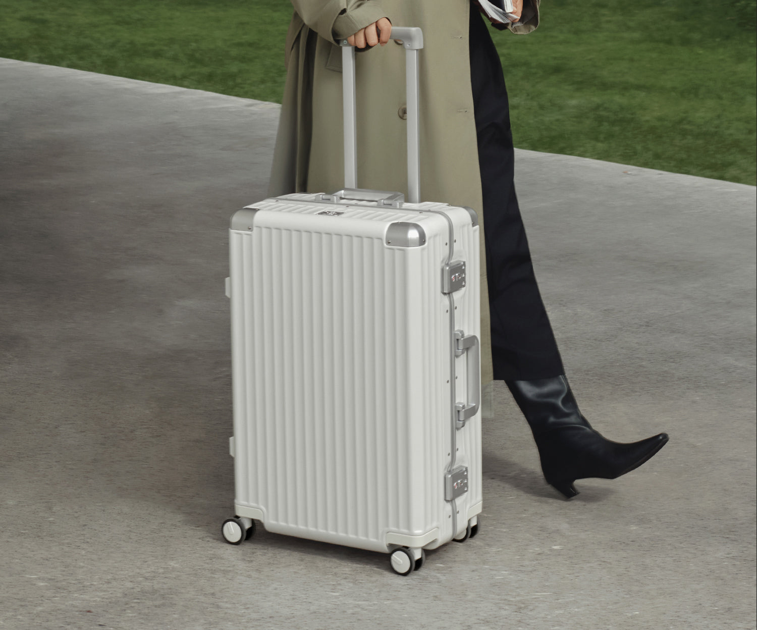 Roaming Aluminum Frame zipperless luggage Khaki green